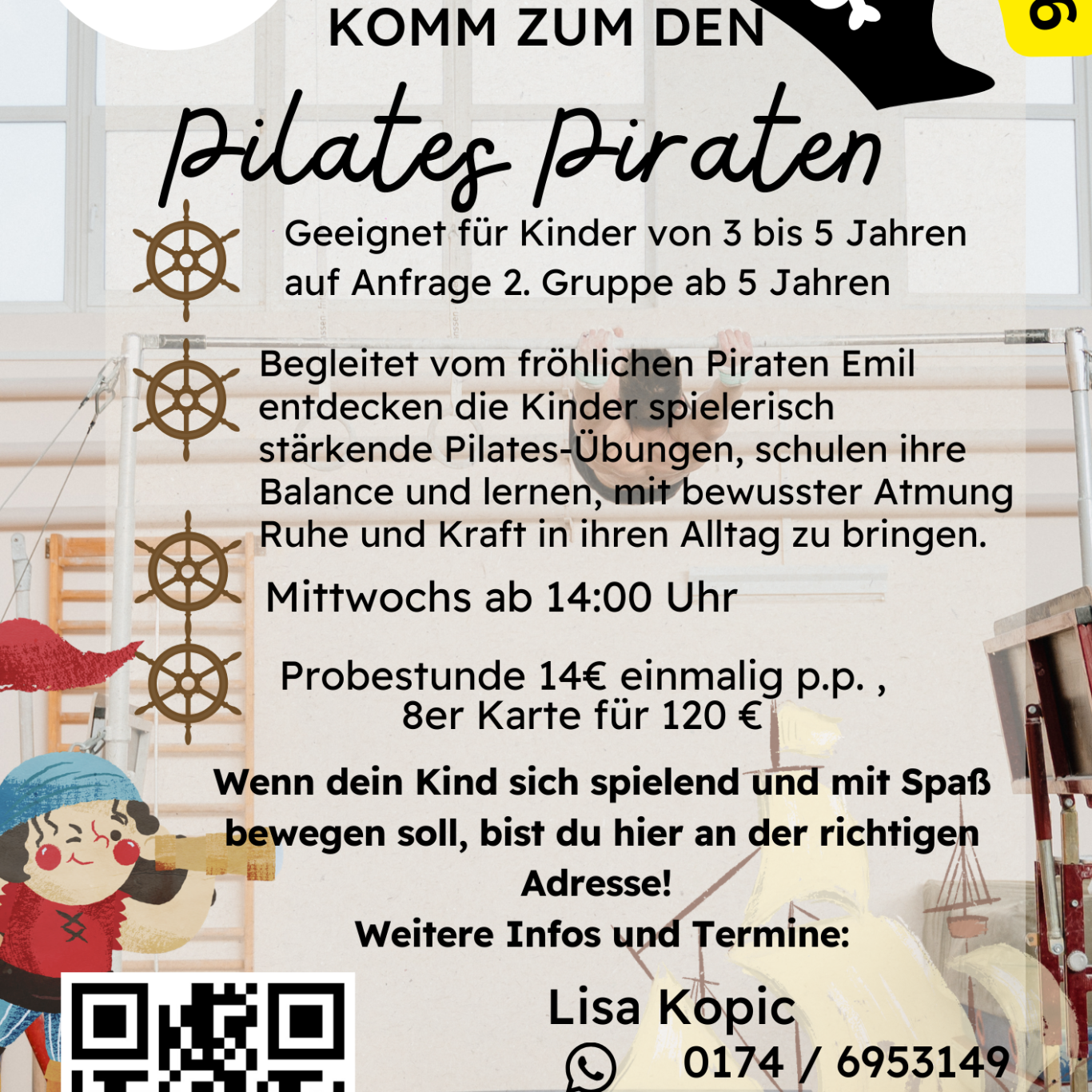 In meinem Pilates Piratenkurs entdecken Kinder spielerisch, wie viel Kraft, Balance und Beweglichkeit in ihnen steckt. Mit fantasievollen Abenteuern auf hoher See stärken wir gemeinsam den ganzen Körper – ganz ohne Leistungsdruck, dafür mit viel Freude und Teamgeist.