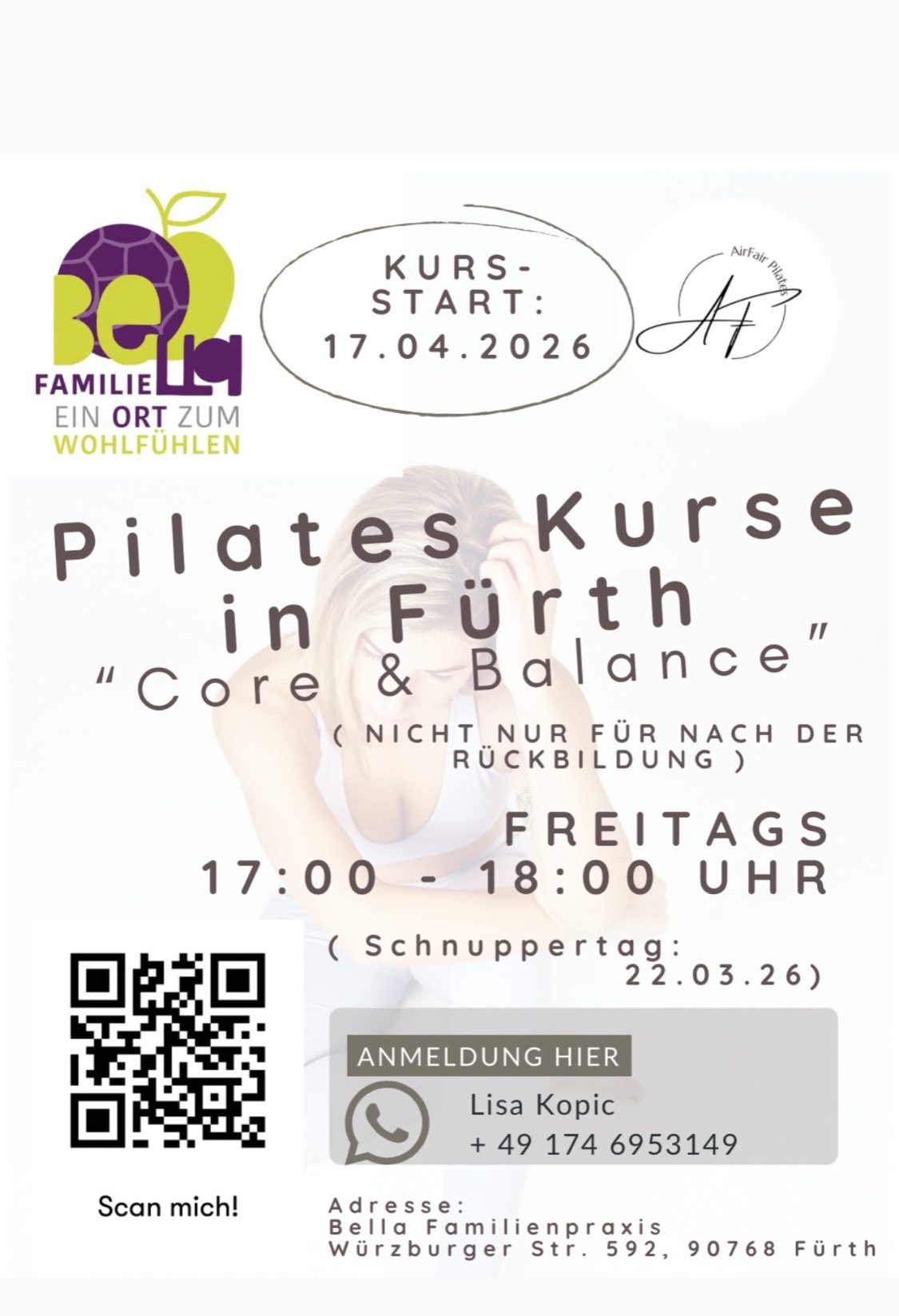 Erhalte einen Einblick in die Pilates Übungen und nehme an einer Einheit über 60 min. . in einem aktuellen Kurs teil.
